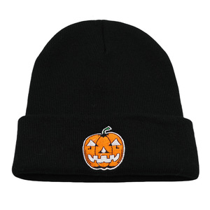 跨境搞怪南瓜灯刺绣针织帽男女万圣节卡通毛线帽欧美街头套头帽子