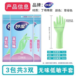妙洁耐用手套洗衣洗碗家务清洁耐磨防滑防水乳胶灵巧手套丁腈家用