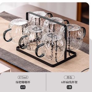 6只树纹杯+黑色杯架+黄金把手托盘★✓