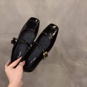 复古时尚平底法式方头单鞋女2025新款香风平底鞋黑色一字玛丽女鞋