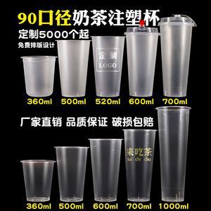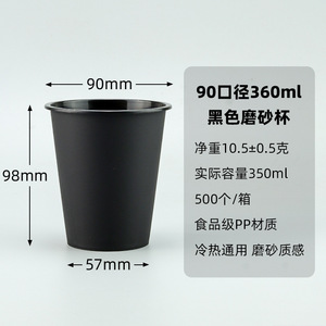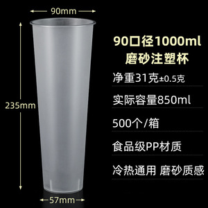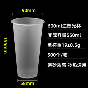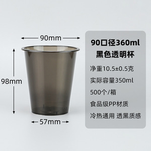 90口径一次性注塑杯500奶茶杯黑色磨砂700ml塑料杯加厚透明杯带盖