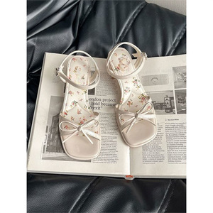 太い足幅の広いフレンチ太ヒールリボンサンダルフェアリースタイルスカート付きハイヒールサンダル