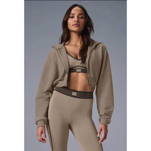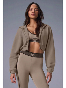 alo肯豆同款 Cropped运动时尚短款拉链连帽外套 宽松休闲开衫卫衣