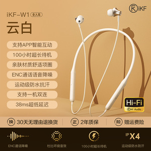 iKF W1运动挂脖蓝牙耳机无线跑步入耳超长续航降噪高端健身颈挂式