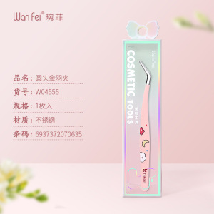 琬菲贴假睫毛镊子安全型睫毛夹子镊子圆头扁弯头工具金羽独立包装
