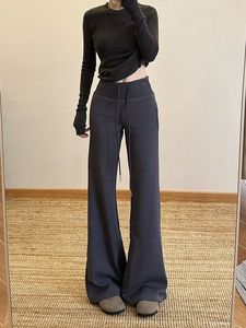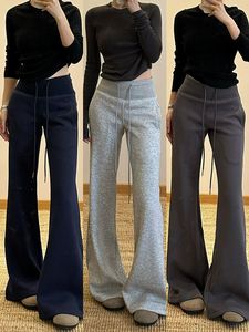 春秋微喇叭卫裤女高腰显瘦宽松绑带抽绳运动休闲直筒阔腿拖地裤子