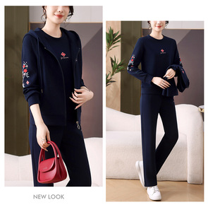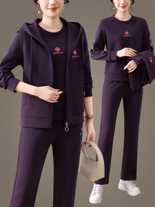 2025春秋新款中老年妈妈秋装运动休闲马甲三件套显瘦洋气卫衣套装