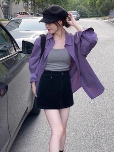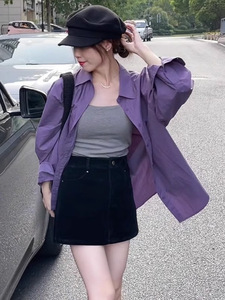 紫色长袖衬衫女外套2025爆款早秋春款衬衣韩系高级感宽松休闲上衣