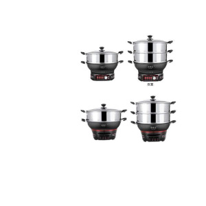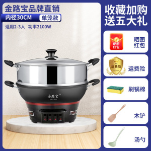 電気中華鍋 鋳鉄製 無塗装ノンスティック鍋 家庭用多機能炒め物・蒸し物 オールインワン電気蒸し器 電気鍋