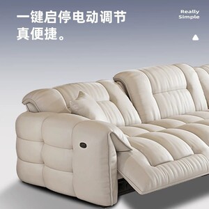真皮沙发太空电动舱功能客厅头层牛皮三人小户型法式奶油风轻奢