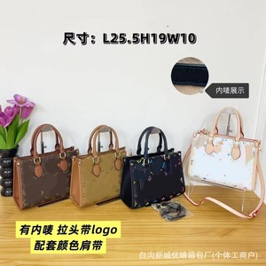 跨境新款驴家女包托特包印花购物单肩手提包白三彩直供跨境新款