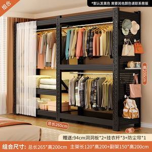 黑色组合款:总长220*深60*高200cm【含整面洞洞板+防尘帘*1+挂衣杆*3】