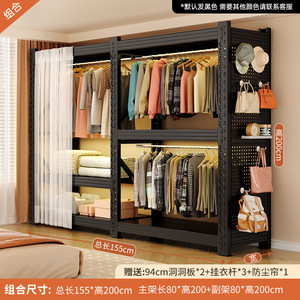 黑色组合款:总长205*深60*高200cm【含整面洞洞板+防尘帘*1+挂衣杆*3】
