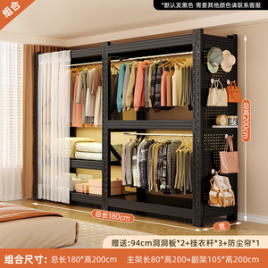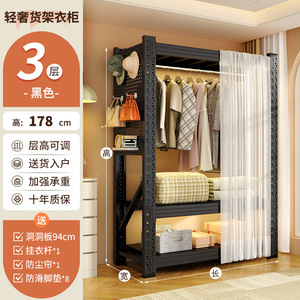 开放式货架衣柜简易组装家用卧室出租房用收纳钢制落地金属挂衣架