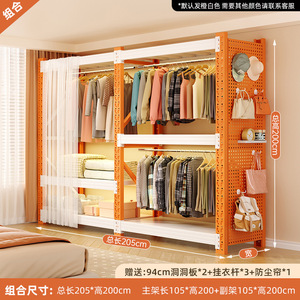 橙白组合款:总长205*深50*高200cm【含整面洞洞板+防尘帘*1+挂衣杆*3】