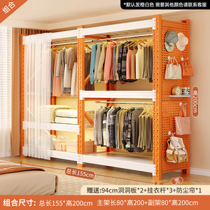 橙白组合款:总长155*深60*高200cm【含整面洞洞板+防尘帘*1+挂衣杆*3】