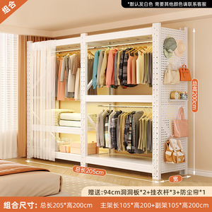 白色组合款:总长205*深60*高200cm【含整面洞洞板+防尘帘*1+挂衣杆*3】