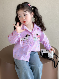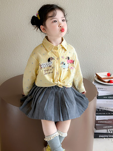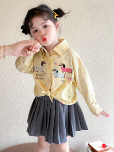 2025 新しい女の子カレッジスタイル刺繍シャツ漫画ダックスフント春と秋の子供服子供の多用途トップストレンディ
