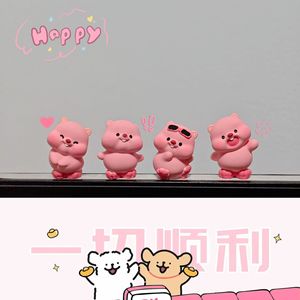 可爱卡通创意粉红小海狸公仔立体办公桌工位车载中控台屏幕装饰品