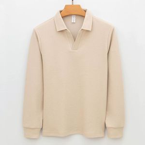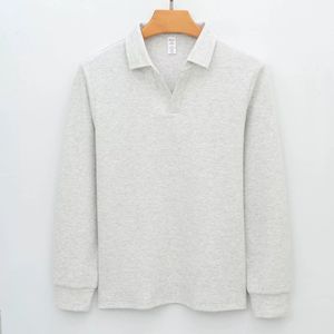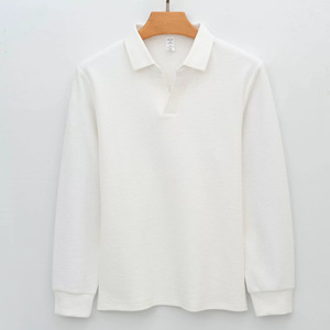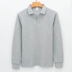 高端泡泡纱提花海鸥领免烫休闲新疆棉针织衫卫衣V领长袖polo衫男