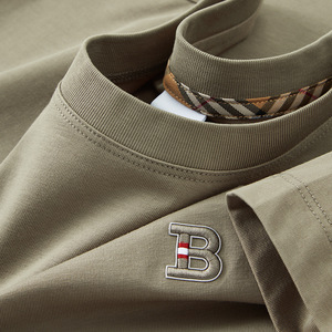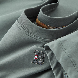 欧货圆领T恤男士短袖2025夏季新款冰丝棉刺绣B字母半袖体批发