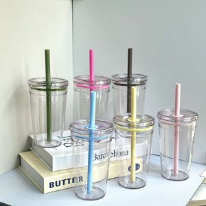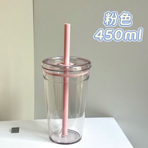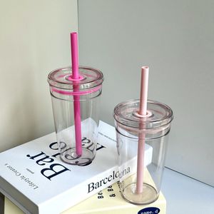 亚克力透明吸管杯新款简约塑料杯校园咖啡杯带盖大容量杯子女学生
