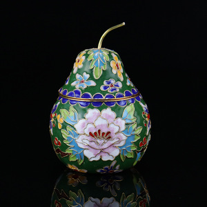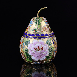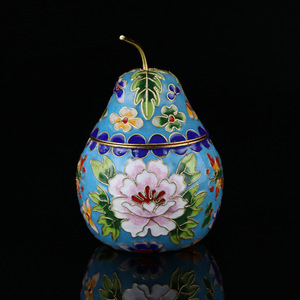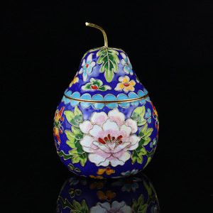 北京景泰蓝工艺文化礼品铜胎掐丝珐琅花丝银蓝3.5寸梨盒首饰盒