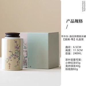 黑檀盖梅兰竹菊逸品茶叶罐陶瓷便携迷你随身储茶罐礼盒包装伴手礼