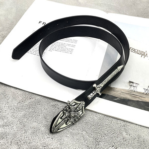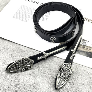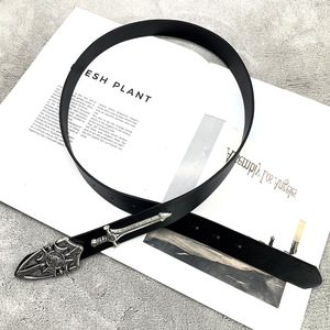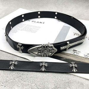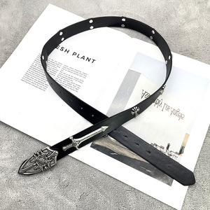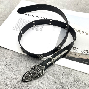 复古宝剑盾牌朋克风十字架扣皮带男女暗黑风黑色柳钉腰带装饰裤带