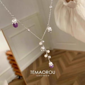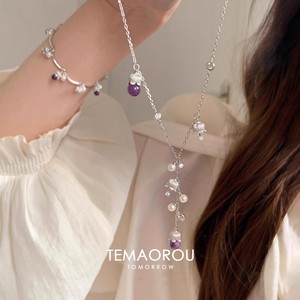 2025 新しい紫色のスズランの花のネックレス女性のライト高級ニッチハイエンドブレスレットファッションフォレストスタイル気質鎖骨チェーン