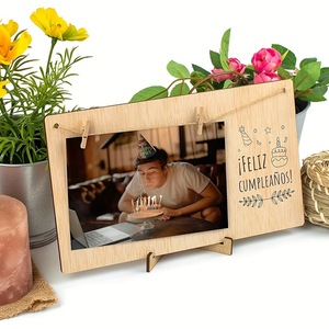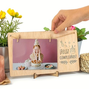 国境を越えた売れ筋の創造的な木製工芸品工場卸売麻縄クリップ付き木製フォトフレーム装飾品