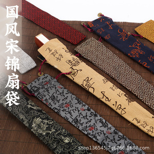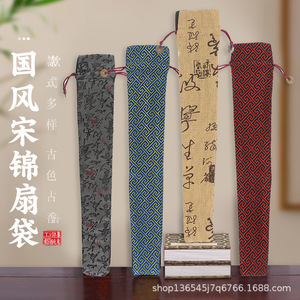 古风折扇扇袋9/10寸扇套亚麻布锦缎刺绣回纹扇套礼品袋收纳袋批发