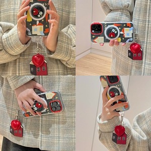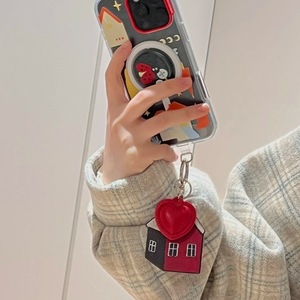 创意皮革红房子爱心手机挂件DIY钥匙扣可爱情侣包挂件腰间挂饰品