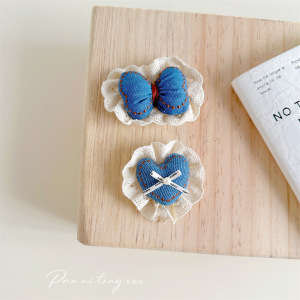 森女系甜美可爱牛仔蕾丝花边爱心蝴蝶结百搭复古胸针服饰配件辅料