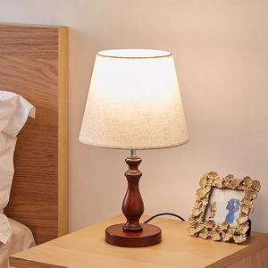 新しい中国風の木製寝室のベッドサイドテーブルランプリビングルームランプ暖かい光プラグイン省エネシンプルなレトロホテルの結婚式の部屋のテーブルランプ