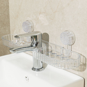 免打孔沥水壁挂置物花朵吸盘水龙头置物架洗手池镜前卫生间浴室