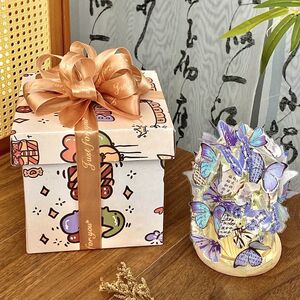 大号化蝶相思蝴蝶贴纸+卡通生日礼物盒+F6罩