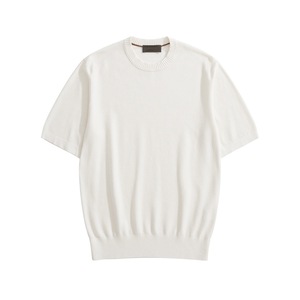 Loro メンズ LP マルベリーシルク混紡糸ニットラウンドネック半袖、軽くて滑らかなフィット感、ドロップショルダースリーブ