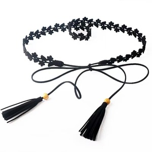 黑色花朵流苏腰链