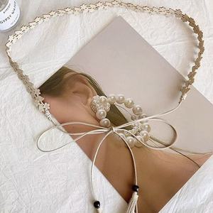 米白花朵流苏腰链