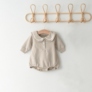 宝宝婴儿秋款学院风撞色边条大翻领包屁衣外穿连体衣三角爬服哈衣
