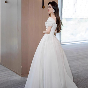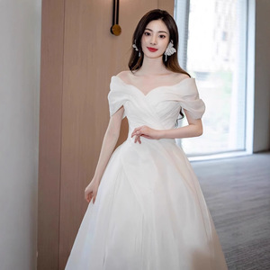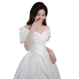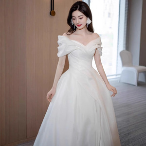 新娘白色一字肩轻婚纱2025新款法式主纱设计感出门纱轻奢旅拍礼服