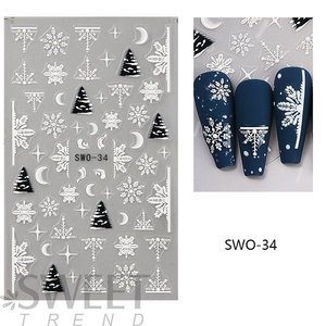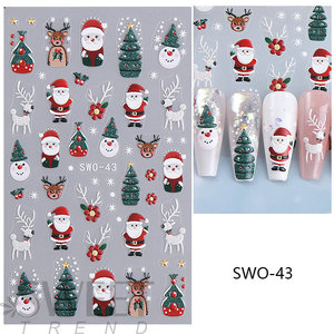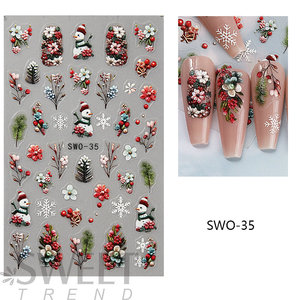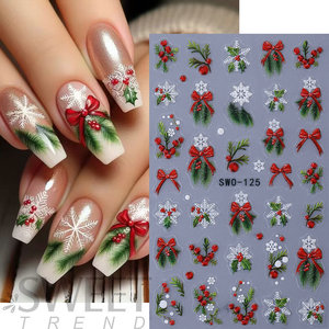 跨境新款美甲贴纸批发 圣诞3D浮雕蝴蝶结冬青枝果树指甲背胶贴花
