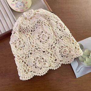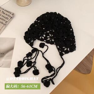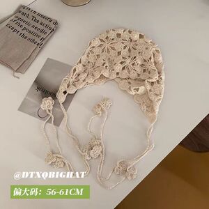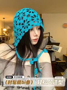 镂空花朵流苏包头帽女吊坠民族风针织套头帽薄款手工编织堆堆帽子