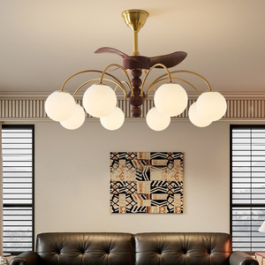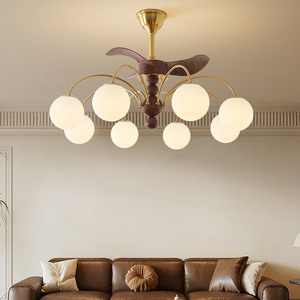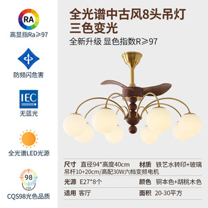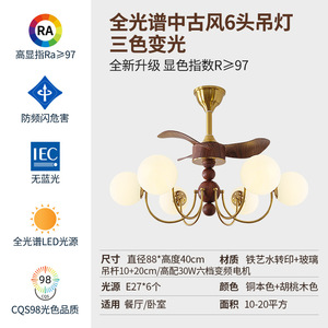 2025中古风扇灯客厅胡桃木色餐厅吊扇灯法式复古卧室书房风扇吊灯