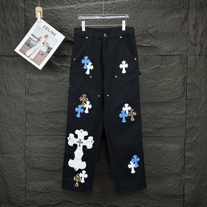 25ssクロスボーダーハイバージョンCHクロウヘビーデューティーウォッシュ加工ストレートルーズカジュアルジーンズ男性と女性用