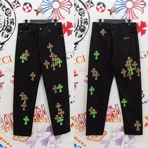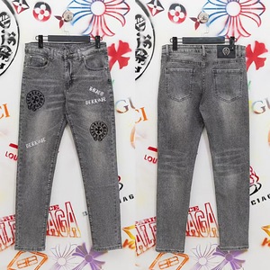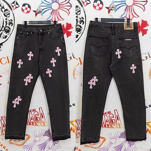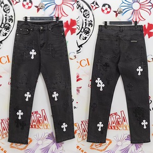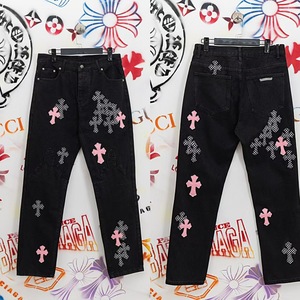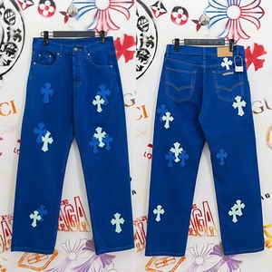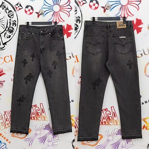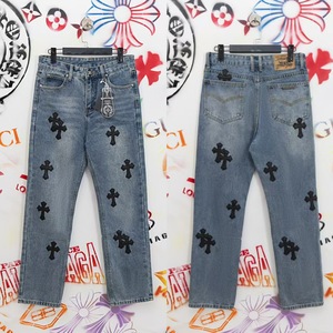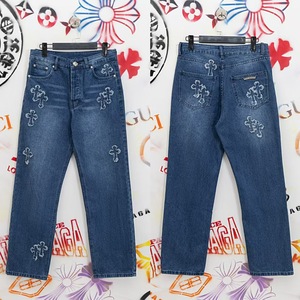 2024秋冬新作トレンドブランドジーンズクロスレザーラベルシルバーウォッシュジーンズ男性と女性用