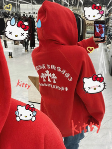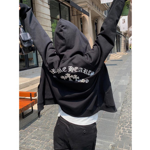 【在庫あり】ブラッククロウレタープリント長袖フード付きスウェットシャツレディース秋新作ルーズカーディガントップ