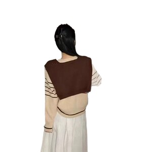 韩版海领围巾慵懒风条纹套头毛衣女宽松设计感针织衫秋冬新款百搭