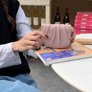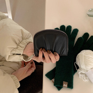 新客时尚褶皱感INS新款简约女可爱小巧钱包网红纯色百搭零钱包